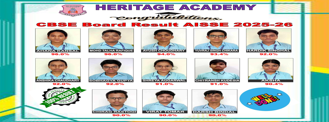 The school excels in every aspect – academics, sports, and overall development. What truly sets it apart is the dedication and motivation of the teachers & principal, Dr. Anuranjani Agarwal. They go above and beyond to ensure each student receives the best possible education and support. I’m grateful for the nurturing environment and opportunities provided, which have helped me grow into a confident and well-rounded individual. I highly recommend Heritage Academy to anyone seeking a quality education.